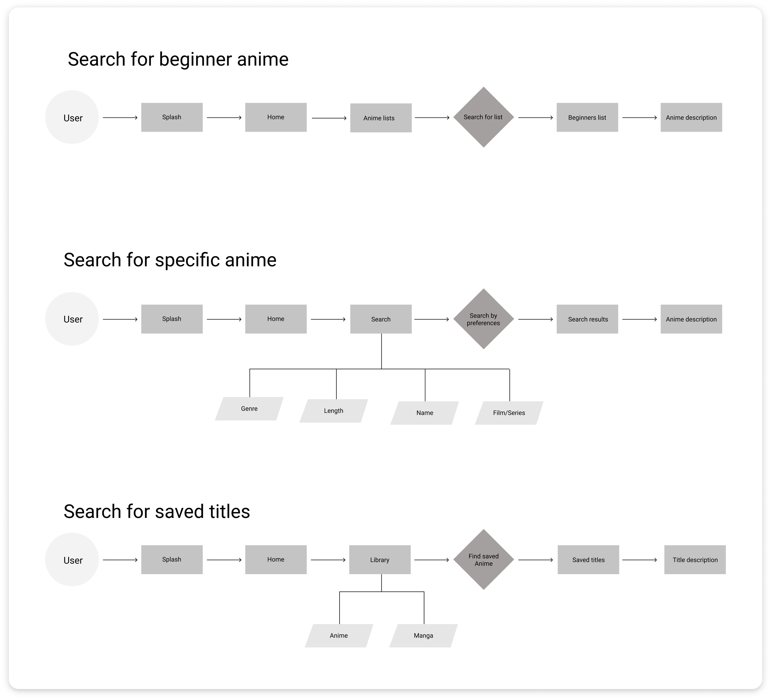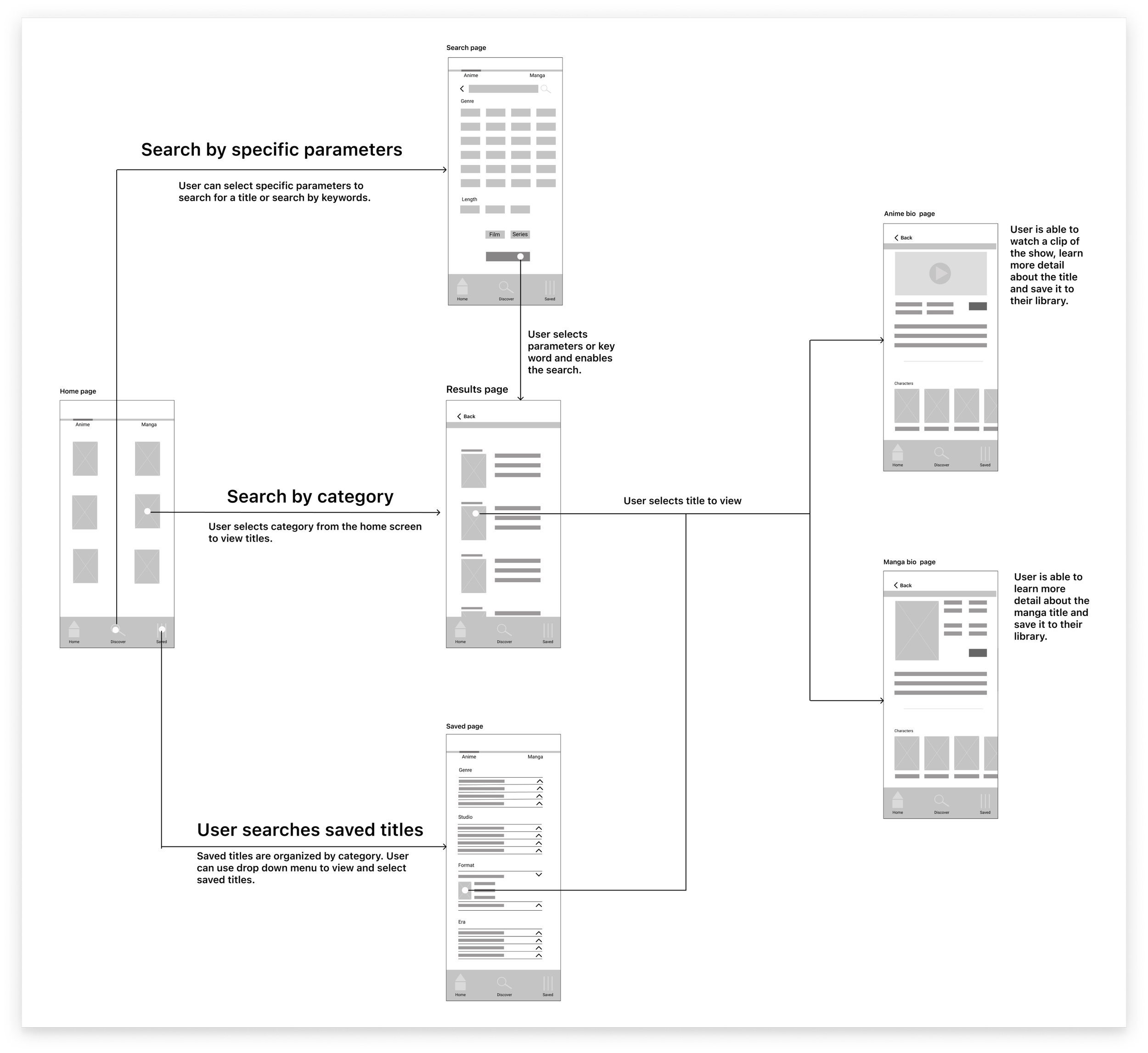 Created a user flow that allows the user to choose a title quickly and dive into an anime or manga as deep as they like.