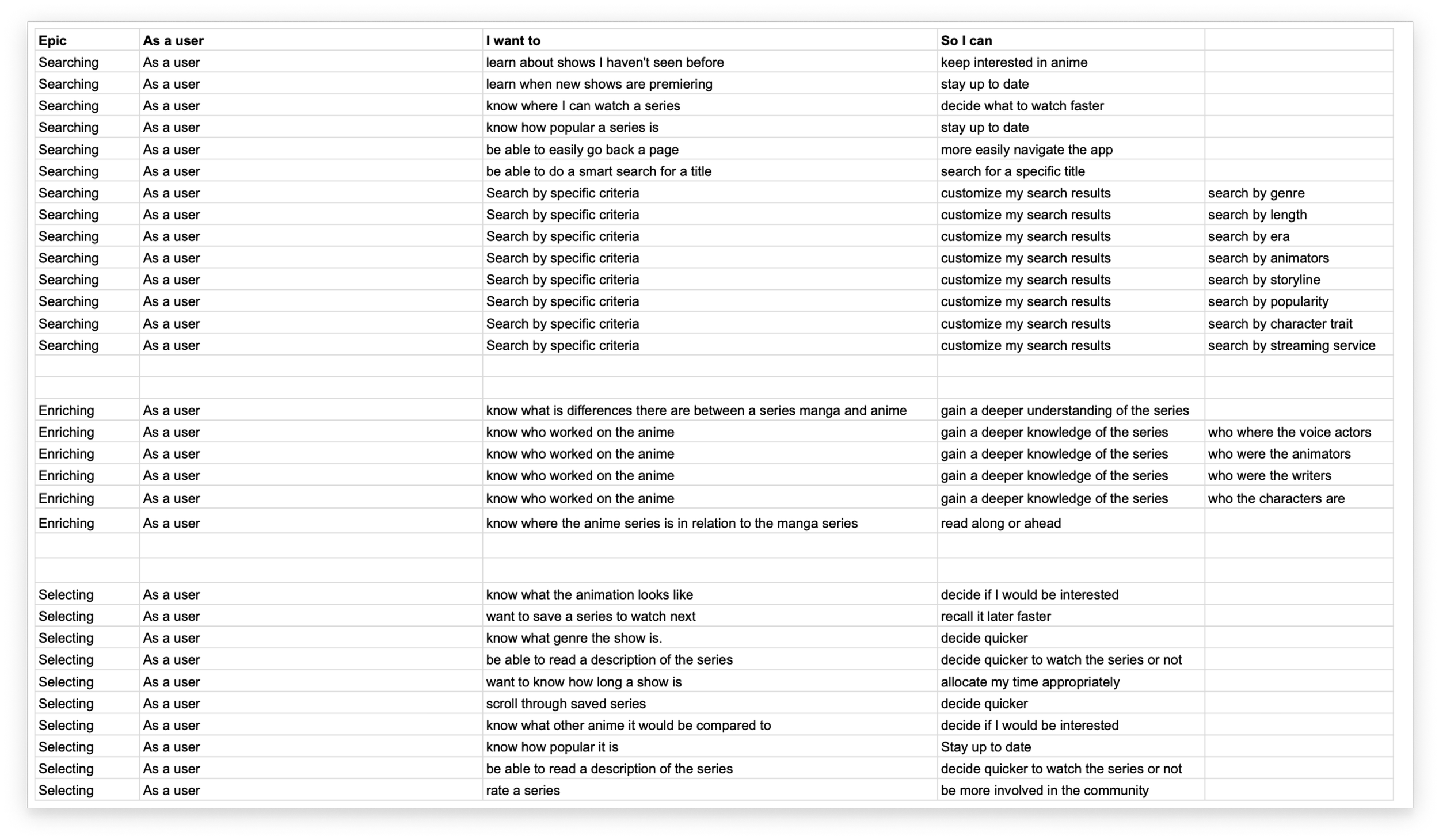 I conducted 6 interviews with fans of anime and manga ranging from casual watchers/readers to avid watchers/readers. From the interviews, 3 main insights surfaced with every person. Were drawn to it because it was so different, played a role in childhood bonding, and gives a sense of community.